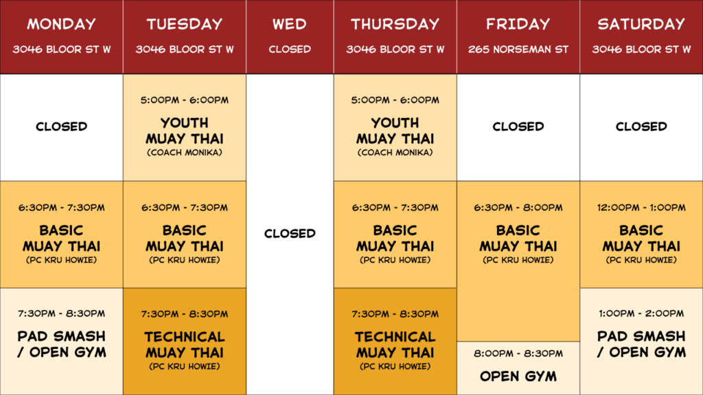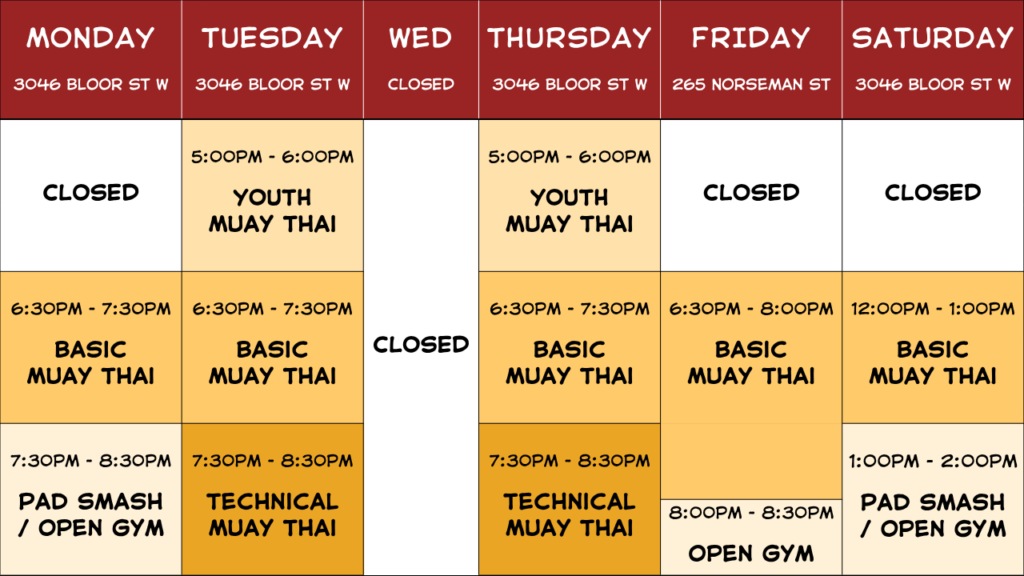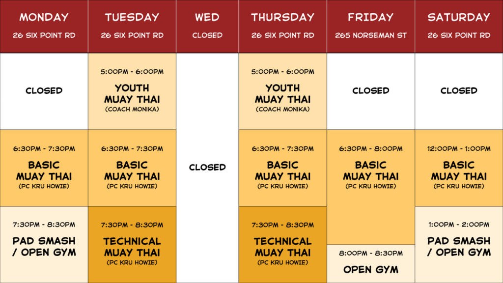 BIG BANG THAI BOXING – SCHEDULE